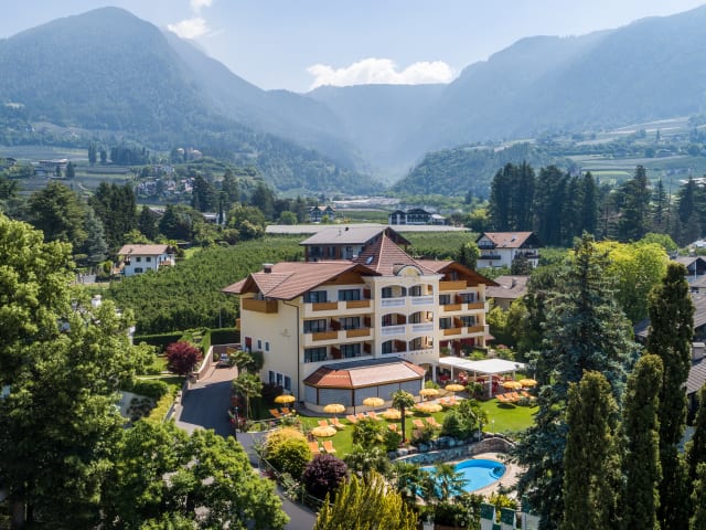 Das Hotel Sonnenburg befindet sich in sonniger Lage umgeben von den atemberaubenden Villen und Apfelplantagen im grünen vom Meran. Es liegt nur 15 Minuten vom Zentrum von Meran entfernt. Eine Bushaltestelle finden Sie nur 250 Meter entfernt. Rad und Wanderwege starten nur wenige Meter vom Hotel. Die Botanischen Gärten mit Schloss Trauttmansdorff sind auch nur wenige Gehminuten vom Hotel entfernt.