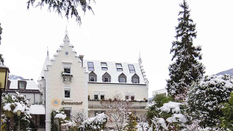 Das Hotel Sonnenhof hat eine zentrale Lage, nur 1 km vom Stadtzentrum von Meran und 2 km vom Skigebiet Meran 2000 entfernt. Eine Bushaltestelle mit Verbindungen nach Meran und Schenna befindet sich 100 m entfernt. Ein öffentlicher Skibus hält 200 m vom Hotel entfernt.