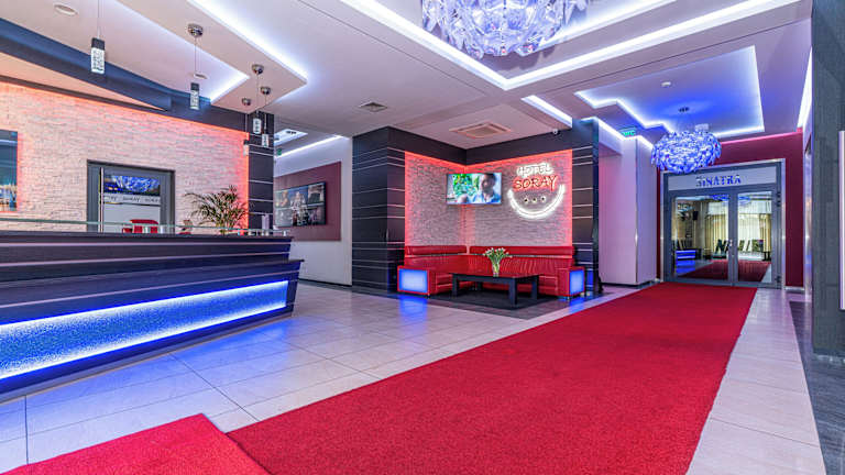 Das Soray präsentiert sich als modernes und elegantes Hotel mit einem hohen Mass an Bequemlichkeit. Die Unterkunft bietet kostenfreie, bewachte Parkiermöglichkeiten und zeichnet sich durch eine 24-Stunden-Rezeption aus. Zusätzlich wird ein Shuttleservice angeboten, der gegen Gebühr in Anspruch genommen werden kann.