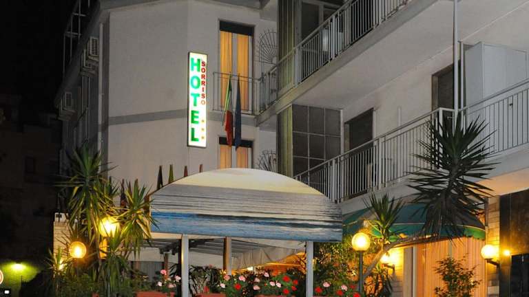Das Hotel Sorriso befindet sich in unmittelbarer Nähe des bekannten Teatro Ariston und des städtischen Kasinos. Es liegt nur 50 Meter vom Meer und 100 Meter vom Hafen Porto Sole und 300 Meter von der Piazza Colombo entfernt.