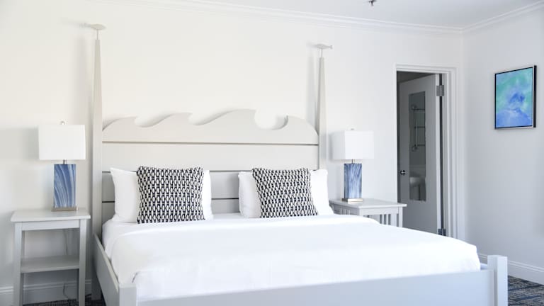 Die Zimmer sind in Meeresthemen gestaltet und verfügen über Klimaanlage, individuell regulierbare Heizung sowie Teppichböden. Zur Ausstattung gehören ein Kingsizebett, ein Sofabett, ein Safe, eine Minibar, ein Schreibtisch, ein Kühlschrank, eine Mikrowelle und eine Tee-/Kaffeemaschine. Die Badezimmer sind mit Dusche oder Badewanne sowie Haartrockner und Kosmetikartikeln ausgestattet. Das Hotel bietet 90 Nichtraucherzimmer, darunter auch rollstuhlgerechte Zimmer.