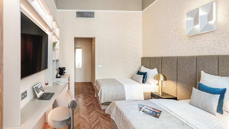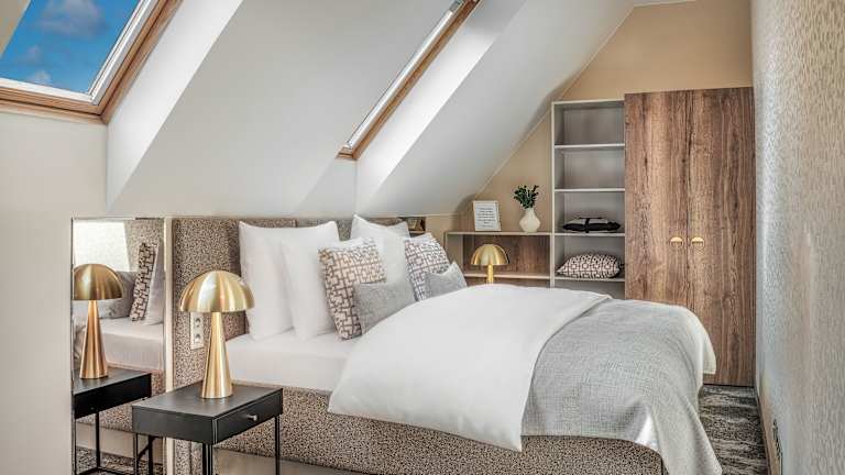Die Zimmer sind mit Klimaanlage und Heizung ausgestattet und verfügen über Teppichböden, ein Doppelbett oder Kingsize-Bett, einen Safe und eine Minibar. Eine Tee-/Kaffeemaschine und ein Bügelset sind ebenfalls vorhanden. Weitere Ausstattungsmerkmale sind ein Telefon mit Direktwahl, ein TV-Gerät mit Satelliten-/Kabelempfang sowie WLAN. Die Badezimmer verfügen über eine Dusche und eine Badewanne und sind mit einem Haartrockner ausgestattet. Es sind rollstuhlgerechte Zimmer buchbar. Insgesamt bietet die Unterkunft Familienzimmer sowie 50 Nichtraucherzimmer.