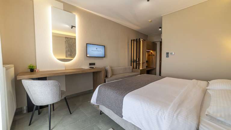 Die Zimmer verfügen über einen Balkon mit Garten- und Poolblick. Jedes Zimmer ist ausgestattet mit einem Flachbild-TV, Klimaanlage, autonomen Heizungssystem und einer Minibar. Das eigene Bad ist mit einer Dusche ausgestattet.