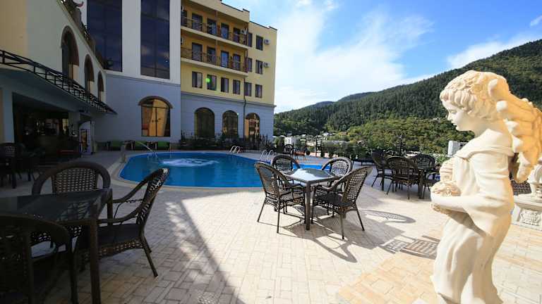 Das Borjomi Palace Hotel & Spa befindet sich im Stadtzentrum von Borjomi, nur 800 m vom Mineral Water Park entfernt. Die Anbindung an öffentliche Verkehrsmittel ist gegeben, und der Bahnhof Borjomi ist in 10 Minuten zu Fuss erreichbar. Der internationale Flughafen von Tiflis ist 170 km entfernt und ein Shuttleservice kann gegen Aufpreis arrangiert werden.