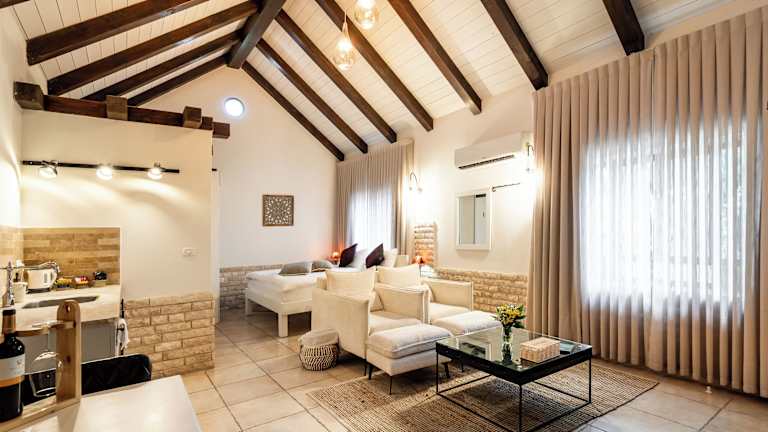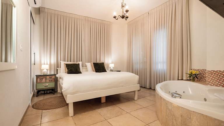 Das Grand Vista Boutique Hotel And Spa in Kfar Yuval bietet Paaren eine entspannte und luxuriöse Umgebung mit Panoramablick auf die Golanhöhen. Genießen Sie den ganzen Tag über kostenlose Snacks und Champagner am Pool und lassen Sie sich von den geräumigen und klimatisierten Unterkünften mit Whirlpool-Badewannen und voll ausgestatteten Küchenzeilen verwöhnen. Entspannen Sie im kostenfreien Wellnessbereich mit Sauna und Whirlpool und genießen Sie frisches Obst und hausgemachte Kekse. Der Transferservice zum und vom örtlichen Busbahnhof ist gegen Aufpreis verfügbar. Bitte beachten Sie, dass der Check-in samstags ab 17:00 Uhr erfolgt.