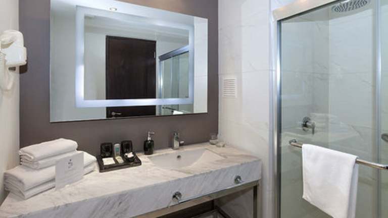 Die Zimmer sind mit Klimaanlage und Heizung ausgestattet und verfügen über ein Doppel- oder Kingsize-Bett. Zu den Annehmlichkeiten gehören ein Safe, eine Minibar, ein Schreibtisch und eine Tee-/Kaffeemaschine. Weiterhin gibt es ein Bügelset und eine Hosenpresse. Die Zimmer sind ausgestattet mit einem Flachbildschirmfernseher sowie kostenlosem Wifi. Das Badezimmer bietet eine Dusche und eine Badewanne sowie Kosmetikartikel. Es sind auch rollstuhlgerechte und Nichtraucherzimmer buchbar.
