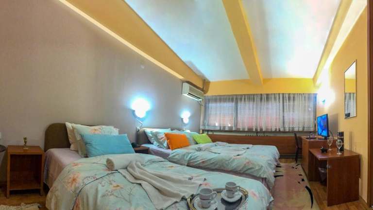 Die Unterkunft Room in Guest room - Hotel Square Macedonia befindet sich in bester Lage in Skopje, nur 300 m von der Steinbrücke und in der Nähe Sehenswürdigkeiten wie dem Hauptplatz von Skopje, der Kale Festung und dem Museum der Mazedonien. Der nächstgelegene Flughafen ist der Flughafen Skopje, welcher 19 km entfernt ist.