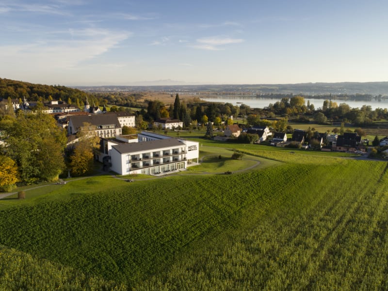In ruhiger Lage, direkt am Wald, 6 km von Konstanz am Bodensee entfernt. Das Klostereigenes Seegrundstück ist 10 Geh-Minuten vom Hotel entfernt.