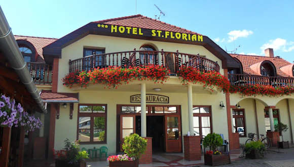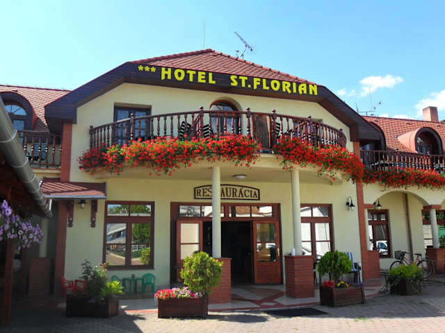 Das Hotel St. Florian befindet sich im Stadtzentrum von Štúrovo, nur 10 Gehminuten vom Thermalbad Vadas entfernt. Die Maria-Valeria-Brücke und die Donau befinden sich im Umkreis von 500 m. Die Basilika von Esztergom, die grösste Kirche Ungarns, ist 2 km entfernt, während die Burg Višehrad in Ungarn 26 km entfernt liegt. Der nächste Bahnhof befindet sich 4 km entfernt.
