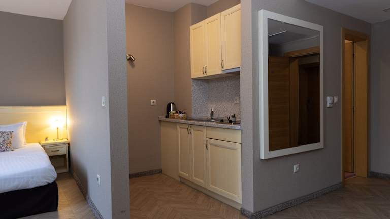 Die Zimmer, Studios und Apartments des Hotels sind luxuriös eingerichtet und bieten modernen Bequemlichkeiten. Jedes Zimmer ist ein Rückzugsort mit privaten Balkonen, Kabel-TV und kostenlosem, hochwertigem Wifi. Die Unterkunft ist darauf ausgelegt, allen Bedürfnissen der Gäste gerecht zu werden und sorgt für einen erholsamen Aufenthalt.