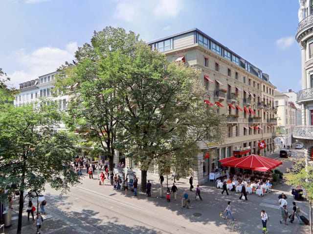 Das traditionsreiche Hotel befindet sich im Herzen von Zürich auf der berühmten Bahnhofstrasse. Nur zwei Gehminuten vom Hauptbahnhof und 15 Minuten mit dem Zug vom Züricher Flughafen entfernt. Ideal für den Geschäftsreisenden und Urlauber. Öffentliche Verkehrsmittel sind an der Hoteltür verfügbar und erlauben dem Kunden alle Sehenswürdigkeiten der Stadt in kurzer Zeit zu erreichen.