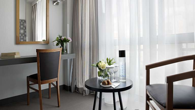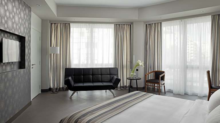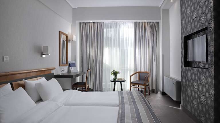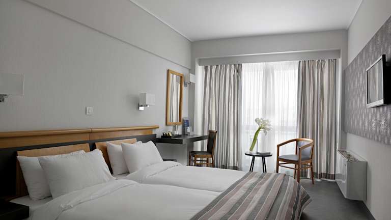 Die Zimmer im Hotel sind modern eingerichtet und verfügen über Klimaanlage, Heizung sowie einen Balkon. Alle Zimmer sind mit einem Doppelbett und einem Sofabett ausgestattet; Zustellbetten sind auf Anfrage verfügbar. Zur Ausstattung gehören ein Safe, eine Minibar, ein Schreibtisch, ein Kühlschrank, sowie ein TV-Gerät. Jedes Zimmer hat ein eigenes Bad mit Dusche, Badewanne und Whirlwanne. Rollstuhlgerechte Zimmer mit barrierefreien Badezimmern sind ebenfalls buchbar.