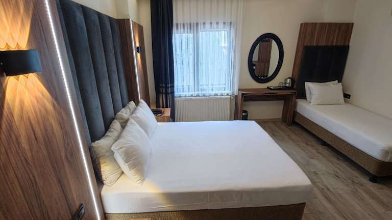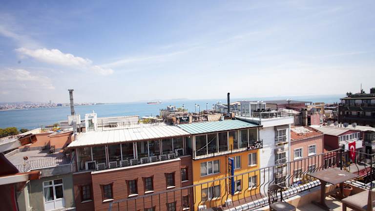 Das Hotel bietet eine hervorragende Lage im historischen Sultanahmet-Viertel von Istanbul. Zu den grossen Sehenswürdigkeiten wie der Hagia Sophia, der Blauen Moschee und dem Topkapi-Palast gelangen die Gäste in rund 10 Gehminuten. Die nächste Bar und das nächste Restaurant befinden sich etwa 200 m entfernt, während Geschäfte nach ca. 350 m erreichbar sind. Der internationale Flughafen Istanbul-Atatürk ist etwa 14 km entfernt.