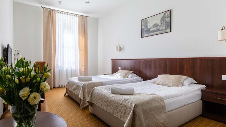 Das Hotel Staromiejski bietet elegante, klassisch eingerichtete Zimmer mit kostenfreiem Internet-Hotspot. Die Zimmer verfügen über ein Bad mit Badewanne oder Dusche, einen TV, ein Telefon sowie dunkle Holzmöbel, einen Schreibtisch und traditionelle Lampen. Die Unterkunft legt Wert auf eine gemütliche und ansprechende Atmosphäre.