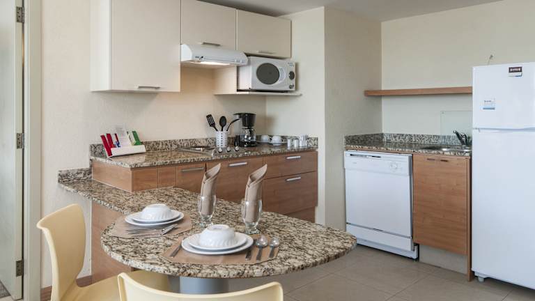 Die Zimmer sind mit einem Wohnzimmer, einer Küche und einem Badezimmer ausgestattet und bieten eine Klimaanlage sowie individuell steuerbare Heizung. Die Räume verfügen über Doppel-, Queensize- oder Kingsize-Betten, eine umfassend ausgestattete Kochnische mit Kühlschrank, Minikühlschrank, Herd, Mikrowelle, Tee-/Kaffeemaschine, Geschirrspüler und Backofen. Weiterhin stehen eine Waschmaschine, ein Bügelset und eine Hosenpresse zur Verfügung. Jedes Zimmer ist mit einem Telefon, einem TV-Gerät mit Satelliten-/Kabelempfang, einem CD-Player, einem DVD-Player und Wifi ausgestattet. Die Badezimmer sind mit Dusche und Badewanne sowie Kosmetikartikeln ausgestattet.