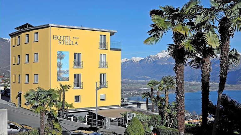 Das Hotel Stella befindet sich am Rande von Locarno, nur 8 Minuten mit dem Auto vom Stadtzentrum entfernt. Ascona liegt 12 Minuten entfernt. Freie Nutzung der öffentlichen Verkehrsmittel im ganzen Kanton Tessin ist ab der Check-in-Zeit bis zum Ende des Abreisetages in der Kurtaxe enthalten.