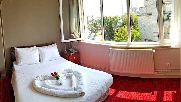 Das Hotel Sultanahmet liegt in unmittelbarer Nähe zu den wichtigsten historischen Stätten Istanbuls, so dass Sie bequem zu Fuß erkunden können. Von der Dachterrasse aus können Sie den Panoramablick genießen und die Atmosphäre der Stadt auf sich wirken lassen.