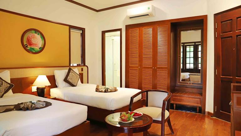 Das Sunny Beach Resort & Spa in Mũi Né bietet Ihnen einen traumhaften Aufenthalt direkt am Strand. Genießen Sie den Luxus der Holzboden-Zimmer mit eigenem Balkon und kostenfreiem WLAN. Entspannen Sie am Außenpool mit Whirlpool oder trainieren Sie im Fitnesscenter. Im hoteleigenen Restaurant werden Sie mit köstlichen Gerichten verwöhnt. Das Resort liegt etwa 7 km von der Stadt Phan Thiet entfernt und bietet Ihnen somit eine ruhige Lage und dennoch eine gute Anbindung an die Umgebung.