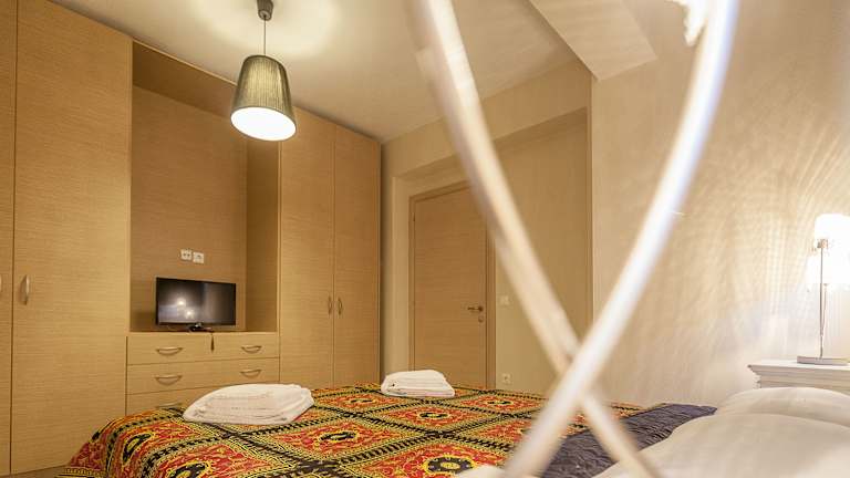 Die Zimmer sind elegant eingerichtet und bieten ein angenehmes Raumklima dank Heizung. Jedes Zimmer verfügt über ein Doppelbett und ein Sofabett, mit der Möglichkeit, Zustellbetten anzufordern. Zur Ausstattung gehören Telefon, Sat-TV, Radio und kostenloses Wifi. Die Badezimmer sind mit Haartrocknern und Telefonen ausgestattet. Das Hotel bietet Familien- und Nichtraucherzimmer.