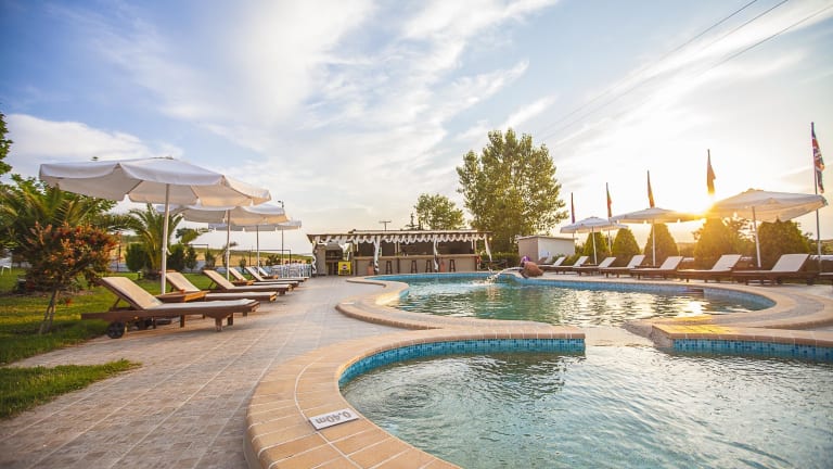 Das Hotel bietet verschiedene Freizeitmöglichkeiten, darunter Innen- und Aussenpools sowie ein Kinderbadebereich. Eine Terrasse mit Sonnenliegen und Sonnenschirmen ist vorhanden. Die Gäste können sich im Spa und im Solarium entspannen. Für die kleinen Gäste wird ein Miniclub angeboten. Zudem gibt es Möglichkeiten zur Autovermietung und einen Transferservice.