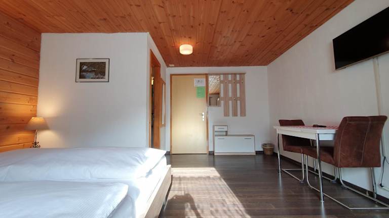 Die Zimmer sind ausgestattet mit eigenem Badezimmer, Flachbild-TV und bieten Ausblicke auf die Berge Tambo, Teuri und Surettaseen sowie das Tal. Die Ausstattung umfasst helle, massive Holzmöbel und Holzbalken, die den heimeligen Charakter der Unterkunft unterstreichen.