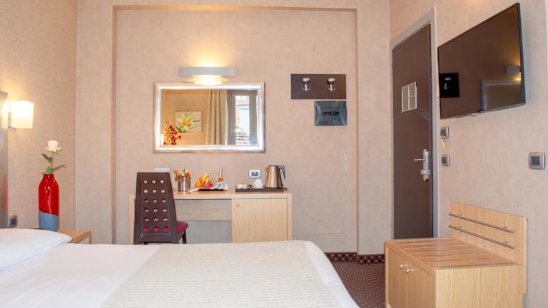 Die Zimmer im Hotel Susa sind modern und verfügen über eine Klimaanlage und Heizung. Die meisten Zimmer sind mit einem Balkon ausgestattet und bieten einen schönen Blick auf den Park an der Viale Argonne. Zur Einrichtung gehören ein Doppelbett, ein Safe, eine Minibar sowie ein Minikühlschrank. Zudem sorgen ein Telefon, ein Sat-TV und kostenfreies WiFi für Bequemlichkeit. Die Badezimmer bieten eine Dusche und eine Badewanne sowie einen Haartrockner. Es stehen Nichtraucherzimmer zur Verfügung.