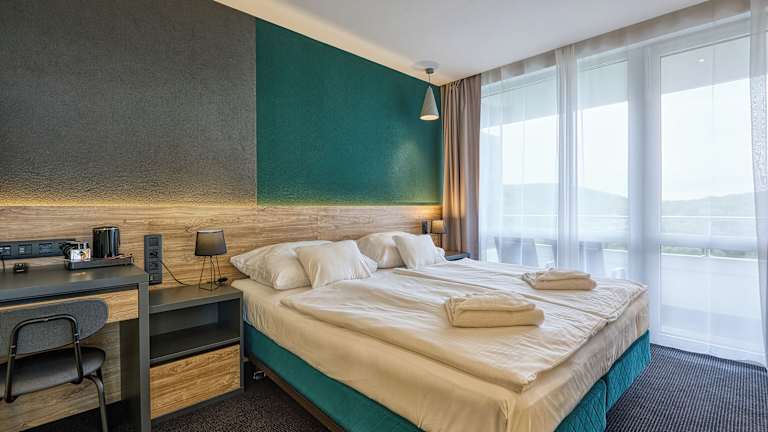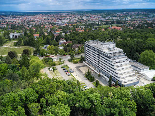 Das Hotel Szieszta in Sopron bietet seinen Gästen eine ruhige Lage inmitten eines Parks und ist nur eine kurze Fahrt vom Stadtzentrum entfernt. Mit kostenfreiem WLAN und einem Wellnesscenter bietet das Hotel den perfekten Ort, um sich zu entspannen. Die Zimmer verfügen über einen Balkon und einen TV, und die Badezimmer sind mit Badewannen oder Duschen ausgestattet. Genießen Sie das Frühstücksbuffet und wählen Sie zwischen einem Abendbuffet oder einem Menü. Die österreichische Grenze ist nur eine kurze Autofahrt entfernt und öffentliche Parkplätze stehen zur Verfügung. Entdecken Sie die Sehenswürdigkeiten von Sopron, wie den Feuerturm und die Synagoge, oder machen Sie einen Tagesausflug nach Wien, das nur 83 km entfernt ist.