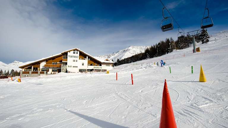 Das Hotel Tambò befindet sich in Campodolcino, 45 km von der Viamala-Schlucht entfernt. Die Lage ermöglicht eine malerische Aussicht auf die umliegenden Berge.