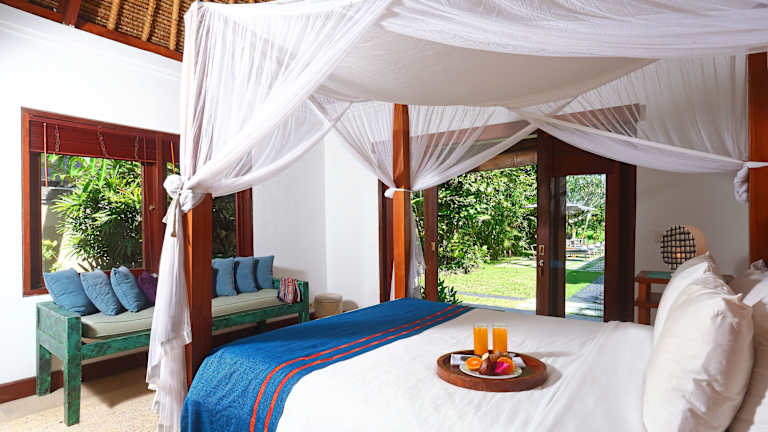 Die Villen im Tamu Seseh sind im balinesischen Stil gestaltet und verfügen über einen offenen Grundriss, der den Wohn- und Essbereich mit dem Schlafzimmer verbindet. Jede Villa bietet einen eigenen Pool, eine voll ausgestattete Küche und Tagesbetten mit Blick auf den Garten. Die Badezimmer im Freien sind mit Duschen ausgestattet. Zur Ausstattung gehören auch kostenfreies WLAN, DVDs und Musik. Eine Mini-Bibliothek mit Büchern und Spielen steht in den Villen zur Verfügung.