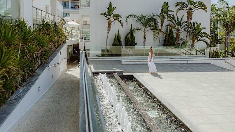 Situated just off the center of Ayia Napa, on a small hill overlooking the sea and right next to the medieval aqueduct and Stone River Forest. Grecian Beach, Ayia Napa's largest sandy beach is only a 10 minutes walk away , while the center is only approximately 5 minutes from the hotel. Thalassa Marine Museum is 2 minutes on foot! The center offers anything from restaurants, bars, shops to entertainment and night life.