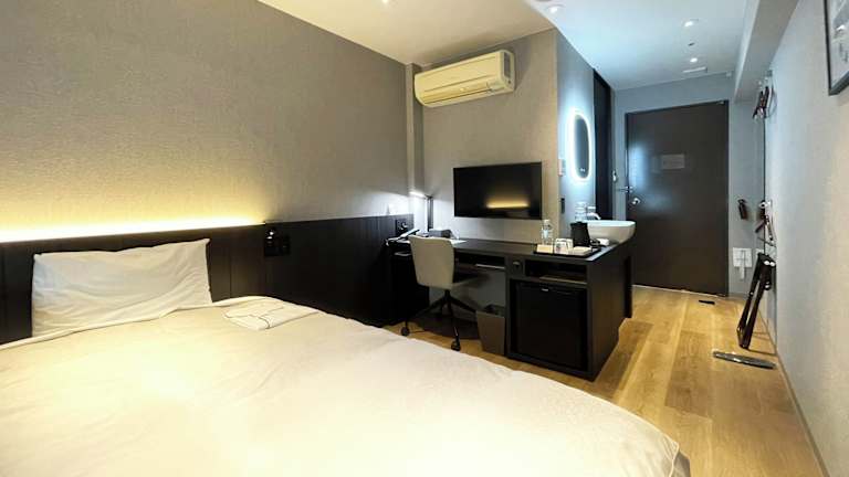Die klimatisierten Zimmer sind mit einem Fernseher, einem Kühlschrank und einer Tee-/Kaffeemaschine ausgestattet. Zudem gibt es einen Schreibtisch und ein Badezimmer mit einem Haartrockner und Kosmetikartikeln. Hausschuhe und japanische Yukata-Roben liegen bereit. WiFi ist in den Zimmern kostenlos verfügbar.