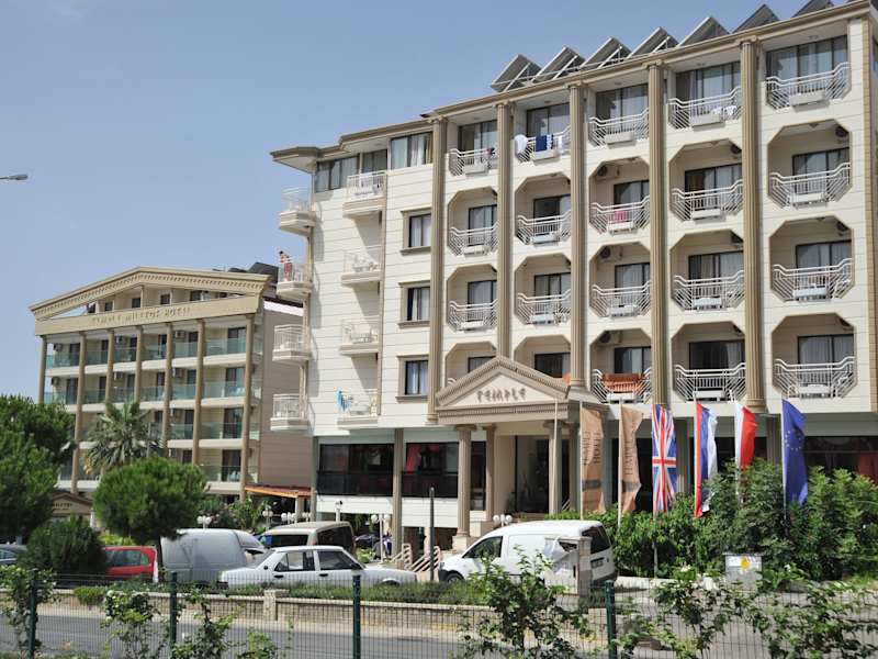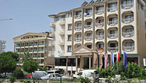 Das Hotel Temple befindet sich in Altinkum, in der Nähe des Sandstrandes, welcher nur etwa 150 m entfernt ist. Die Entfernung zum Stadtzentrum beträgt ca. 300 m. Zu den interessanten Orten in der Umgebung gehören der Strand Altinkum, der Strand Didim 2. Koy Plajı sowie der Hafen von Didim, der ca. 3,4 km entfernt ist. Der nächstgelegene Flughafen ist der Flughafen Bodrum-Milas, welcher etwa 71 km vom Hotel entfernt liegt.