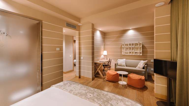 Die modernen Zimmer sind mit klimatisierter Bequemlichkeit ausgestattet und bieten Balkon oder Terrasse mit Gartenblick. Zur Ausstattung gehören ein Flachbild-TV, eine Minibar sowie ein eigenes Bad mit Dusche, kostenfreien Pflegeprodukten und Haartrockner. Die Zimmer verfügen zudem über einen Safe und offerieren auf Anfrage Zustellbetten. Es sind auch rollstuhlgerechte Zimmer verfügbar.