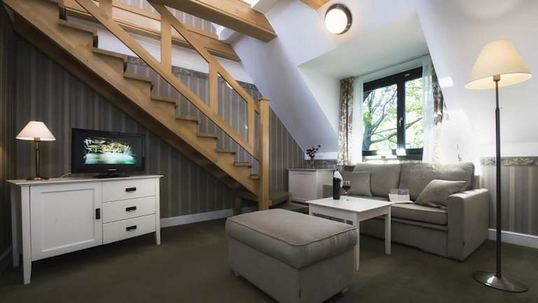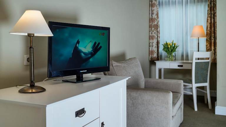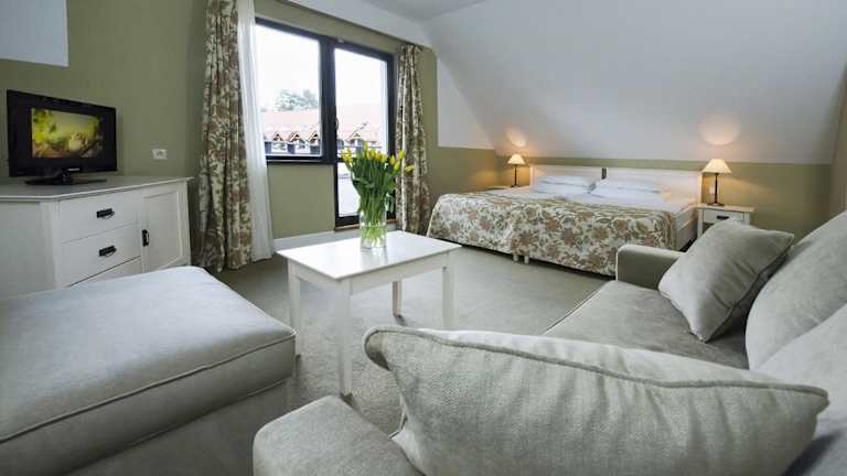 Das Hotel bietet zahlreiche Zimmer und Apartments, die mit Sat-TV, Sitzgelegenheiten und Blick auf die Landschaft des Ermlandes ausgestattet sind.