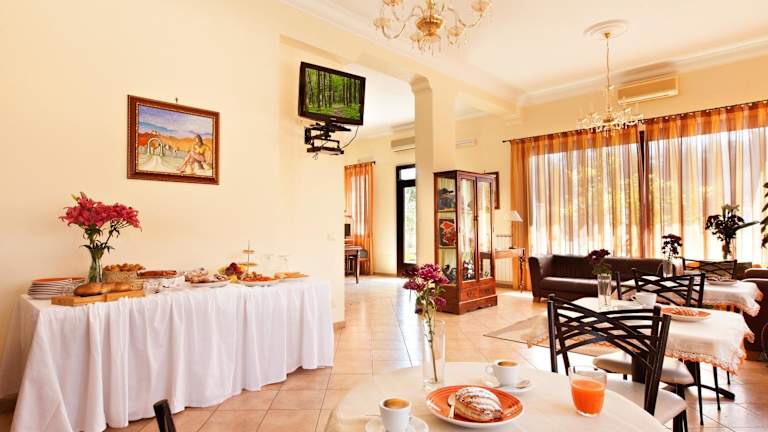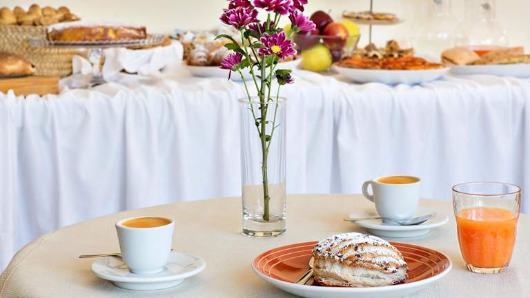 Jeden Morgen wird ein Frühstück in Buffetform angeboten, das kontinentale sowie italienische Optionen umfasst. Weitere gastronomische Einrichtungen beinhalten eine Bar und spezielle Menüs für besondere Ernährungsbedürfnisse sind auf Anfrage erhältlich.