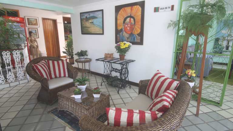 Die Unterkunft befindet sich im Zentrum von Porto Seguro, nur 700 m vom Strand Praia do Centro entfernt. In der Nähe befinden sich auch die Strände Praia do Cruzeiro und Ponta do Apaga Fogo. Der Flughafen Porto Seguro ist 4 km entfernt.