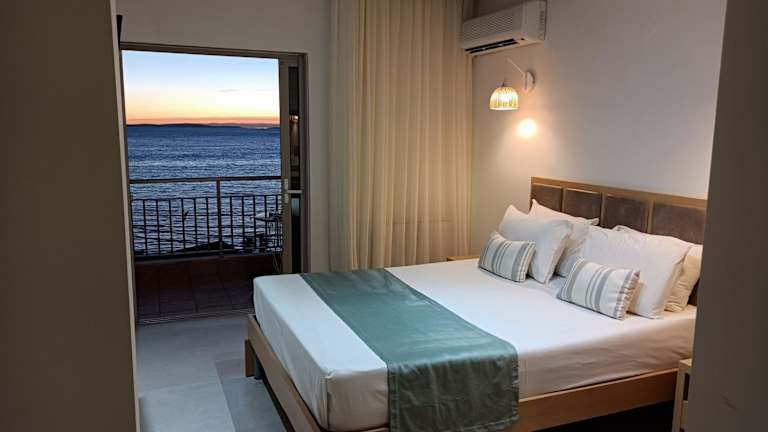 Die klimatisierten Unterkünfte im Hotel Thassos verfügen über einen eigenen Balkon mit Aussicht auf die umliegenden Berge. Die hellen und geräumigen Zimmer sind modern eingerichtet und in hellen Farben gestaltet. Jedes Zimmer ist ausgestattet mit einem Sat-TV, einem Kühlschrank, einem Safe sowie einem eigenen Badezimmer mit Haartrockner.