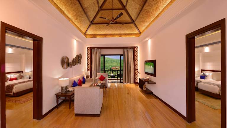 Die Zimmer sind elegant gestaltet und verfügen über Klimaanlage, Ventilatoren sowie Balkon oder Terrasse mit Gartenblick. Zur Ausstattung gehören Zaun, Safe, Minibar, Schreibtisch, Kühlschrank, Mikrowelle und Tee-/Kaffeekocher. Das Badezimmer ist mit einem Haartrockner und Kosmetikartikeln versehen. Rollstuhlgerechte Zimmer sind buchbar.