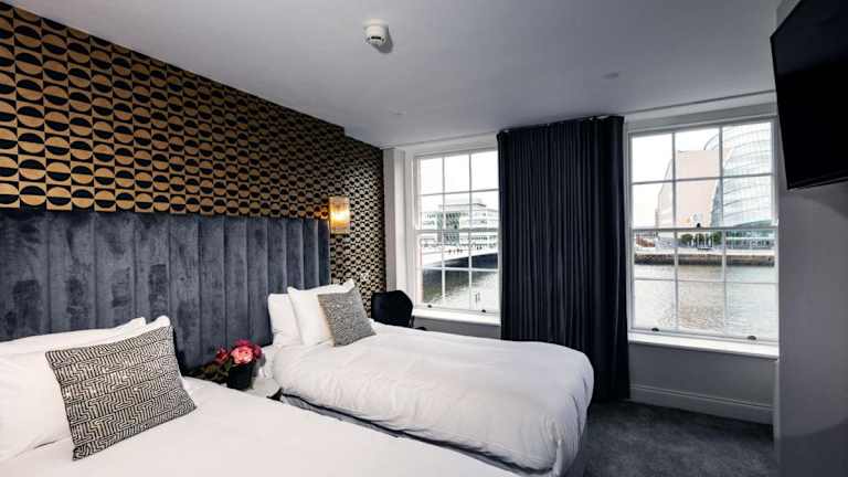 Das Hotel The Ferryman befindet sich in zwei denkmalgeschützten, georgianischen Gebäuden mit Blick auf den Fluss Liffey. Es liegt nur 1,6 km vom Zentrum von Dublin entfernt und direkt neben der berühmten Samuel-Beckett-Brücke, gegenüber dem Kongresszentrum und in der Nähe des Bord Gais Energy Theatres.