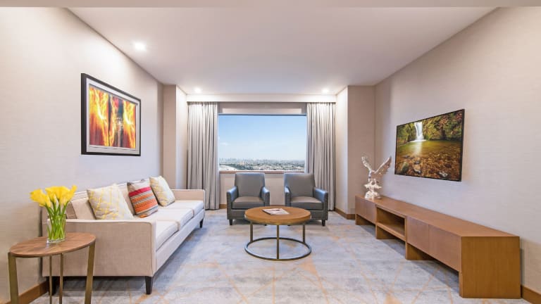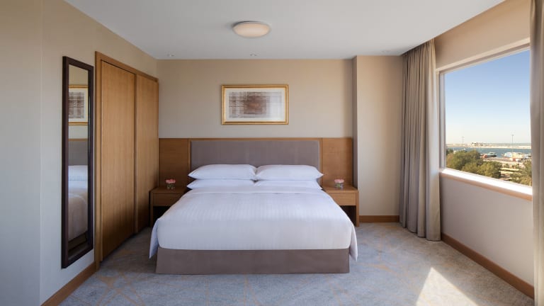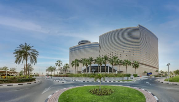 Der gastronomische Bereich umfasst ein Restaurant, ein Café und eine Bar, wo ein kontinentales Buffetfrühstück, Mittagessen und Abendessen angeboten werden. Halbpension und Vollpension sind ebenfalls buchbar. Zudem finden sich spezielle Angebote für Diätgerichte und Kindermenüs. Für besondere kulinarische Erlebnisse sorgt das auf dem Dach gelegene Drehrestaurant Al Dawaar sowie die authentisch japanische Küche im Miyako.