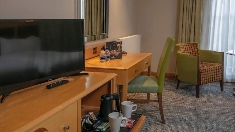 Die Zimmer verfügen über eine Klimaanlage, Heizung, Ventilator, Teppichboden, Doppelbett oder Sofabett, Minibar, Kühlschrank, Tee-/Kaffeemaschine sowie ein eigenes Bad mit Dusche und Badewanne. Zusätzliche Annehmlichkeiten sind ein Fernseher mit Sky-Kanälen, kostenloses WiFi und Kosmetikartikel. Rollstuhlgerechte und Familienzimmer sind ebenfalls verfügbar.
