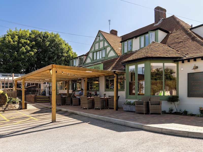 Das Hotel The Hampshire Hog bietet heimelige Zimmer sowie schmackhafte lokale Speisen. Die Gäste können Fuller's preisgekrönte Biere geniessen und von der grossen Parkiermöglichkeit sowie der einladenden Terrasse profitieren.