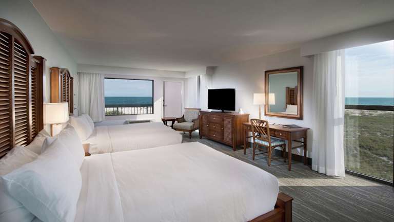 Die Zimmer verfügen über eine Klimaanlage und eine Heizung sowie einen Balkon oder eine private Terrasse mit Meerblick. Sie sind ausgestattet mit einem Doppelbett, einem Queensize-Bett, einem Kingsize-Bett oder einem Sofabett. Zu den weiteren Annehmlichkeiten gehören ein Safe, eine Minibar, ein Kühlschrank, eine Tee-/Kaffeemaschine und ein Bügelset. Im Badezimmer stehen den Gästen ein Haartrockner und kostenlose Kosmetikartikel zur Verfügung. Es können auch rollstuhlgerechte Zimmer gebucht werden.