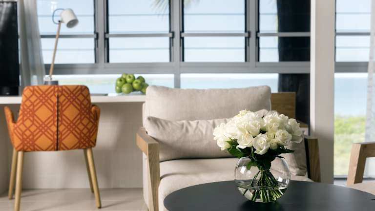 Die Zimmer sind mit einer Klimaanlage, Heizung und Ventilator ausgestattet. Die meisten Zimmer verfügen über einen Balkon, ein queensize oder kingsize Bett sowie Zustellbetten auf Anfrage. Weitere Annehmlichkeiten sind ein Safe, eine Minibar, ein Kühlschrank, eine Tee-/Kaffeestation, ein Schreibtisch, ein TV-Gerät und kostenfreies WiFi. Die Badezimmer bieten eine Dusche und eine Badewanne, sowie Kosmetikartikel und einen Haartrockner. Das Hotel hat Nichtraucherzimmer und bietet rollstuhlgerechte Optionen.