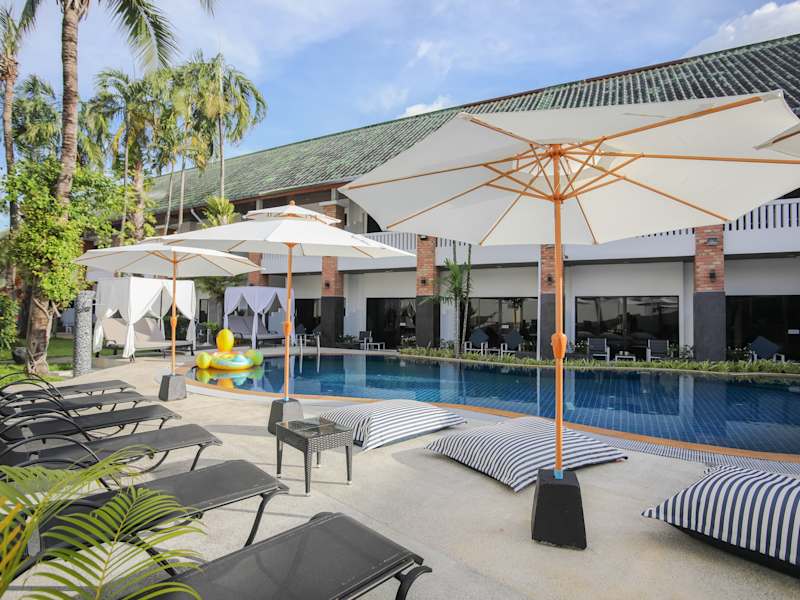 Das Hotel The Mermaid Resort bietet erschwingliche Kurzurlaube in heimeliger Atmosphäre. Die Unterkunft verfügt über einen Aussenpool und klimatisierte Zimmer mit eigenem Balkon, ideal für entspannte Ferien.