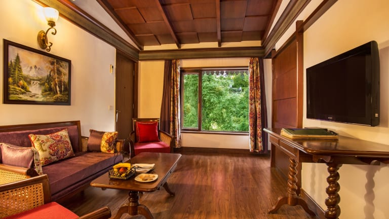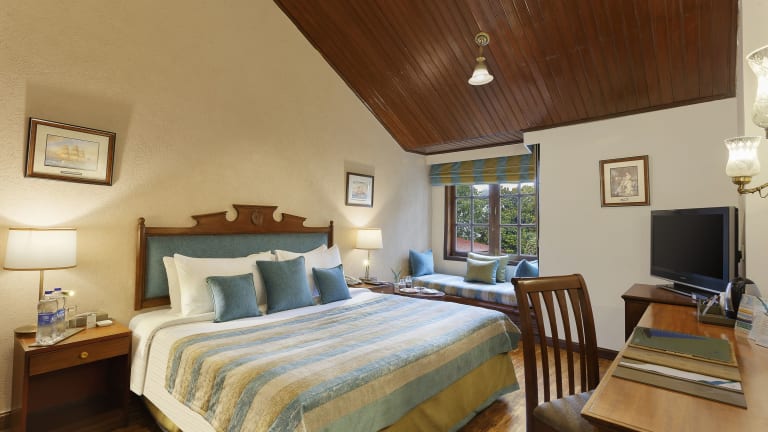 Die Zimmer im Naini Retreat bieten grosszügige Erkerfenster mit Blick auf die Nainital-Täler und Hügel. Sie sind mit Holzböden, Heizung und einem eigenen Bad ausgestattet. Zudem sind Kaffee- und Teezubehör sowie ein Flachbild-TV vorhanden.