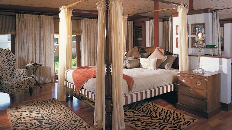 Die Zimmer sind geschmackvoll eingerichtet und verfügen über Holzböden, ein Himmelbett und ein eigenes Bad mit freistehender Badewanne. Zur Ausstattung gehören ein Flachbild-TV, ein DVD-Player, ein eigener Safe sowie eine Klimaanlage. Zusätzlich haben die Zimmer eine Terrasse, eine Minibar und eine Teezubereiter. Rollstuhlgerechte Zimmer sind ebenfalls buchbar. Gäste dürfen auf einen Gute-Nacht-Service und bequeme Bademäntel in den Badezimmern zählen.