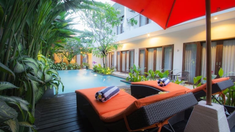 Das The Pavilion Hotel Kuta befindet sich umgeben von tropischer Vegetation, nur 10 Gehminuten vom Strand von Kuta entfernt. Zudem ist der internationale Flughafen Denpasar lediglich 3 km entfernt.