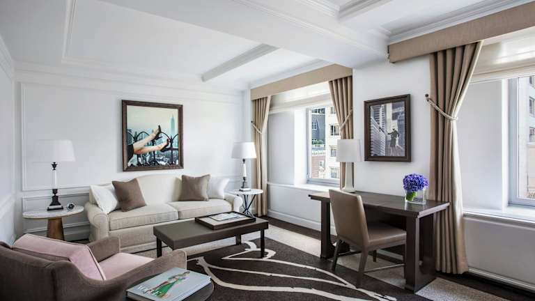 Das Hotel bietet verschiedene Zimmertypen, darunter das Deluxe King-Zimmer mit Blick auf den Central Park. Jedes Zimmer ist ca. 38 bis 41 m² gross und verfügt über Annehmlichkeiten wie Klimaanlage, Minibar, Flatscreen-TV, iPod-Docking Station, separater Dusche und Badewanne sowie Bademäntel und Slipper. Die Zimmer sind elegant gestaltet und bieten eine heimelige Atmosphäre.