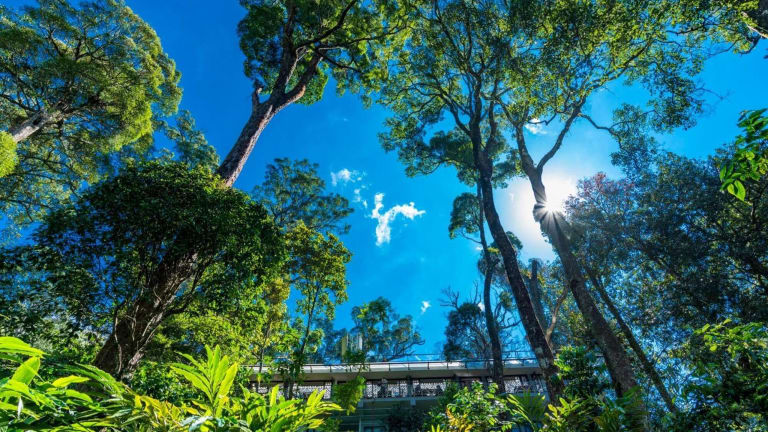 Das Hotel The Tall Trees befindet sich inmitten von 600 hohen Bäumen auf einem 160 Hektar grossen, unberührten Waldgebiet. Es liegt 20 km vom Echo Point entfernt und der internationale Flughafen Cochin ist nach einer 4-stündigen Autofahrt erreichbar.